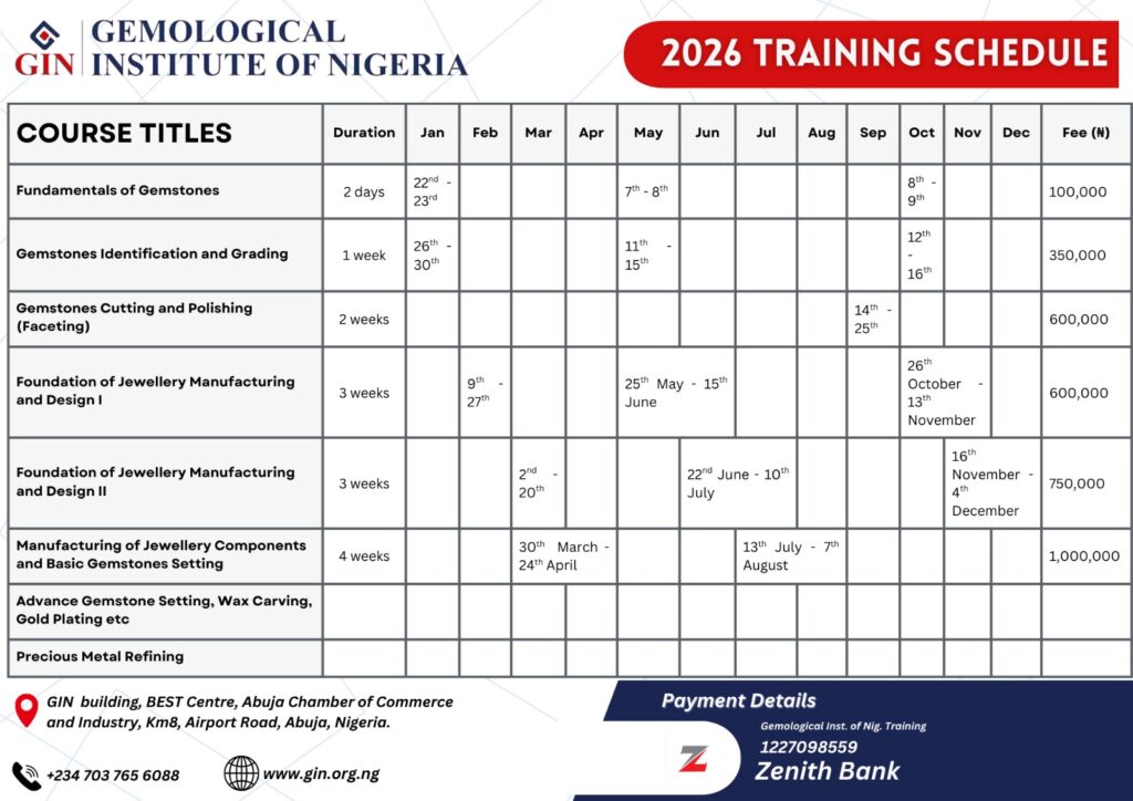 Gemological Institute of Nigeria (GIN) is set up to offer a unique combination of world-class academics and training in the field of gemology. GIN is to set the standard for gemology in Nigeria. The institute offers training programs that will help the student learn about the varieties of gemstones, teach students how to identify gemstones, how to grade gemstones, appraise them, learn the terminologies of the industry as well as the proper usage of gemology instruments.